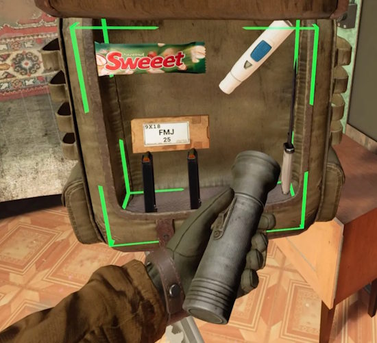 In Into The Radius, you manage your inventory by pulling items out of a physical backpack rather than an inventory menu: