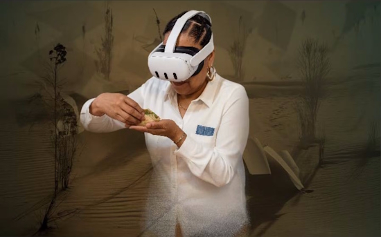 “Taste of Exile” by digital artist Illya Mousavijad immerses participants in an animated meal prepared by immigrant chefs. He uses food to explore the immigrant experience of displacement and resilience.