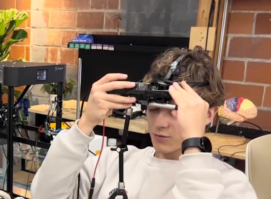 While technically head-mounted, the current device does require being held up with two hands. But as with all such prototypes, it likely could be significantly miniaturized.