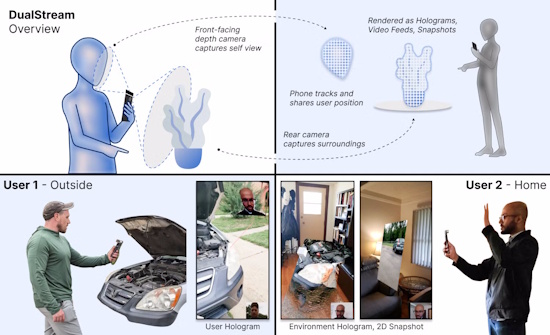 For example, imagine your car has broken down on the side of the road. You might call an expert to talk you through a possible solution, but if you don’t know much about what’s under the hood, you will likely be hard-pressed to make the fix. With Vanukuru’s technology, dubbed DualStream, the caller can transmit a live 3D rendering of the car to an expert, who can then point to specific parts directly, improving the sense of shared presence over a standard video call.